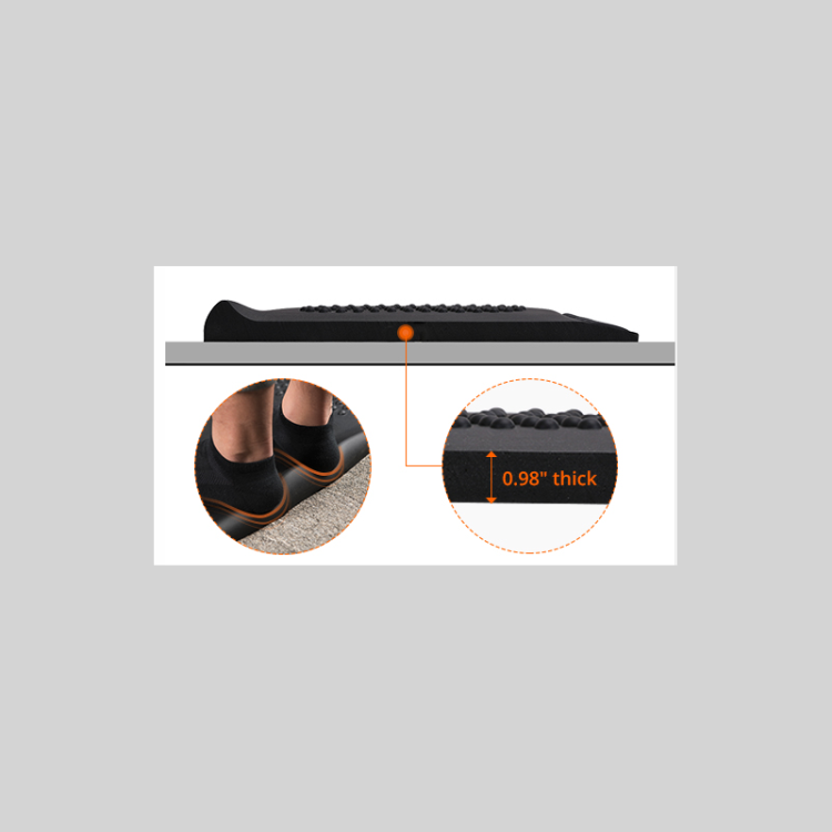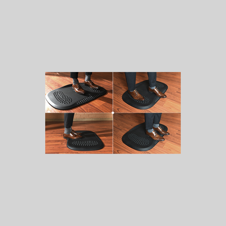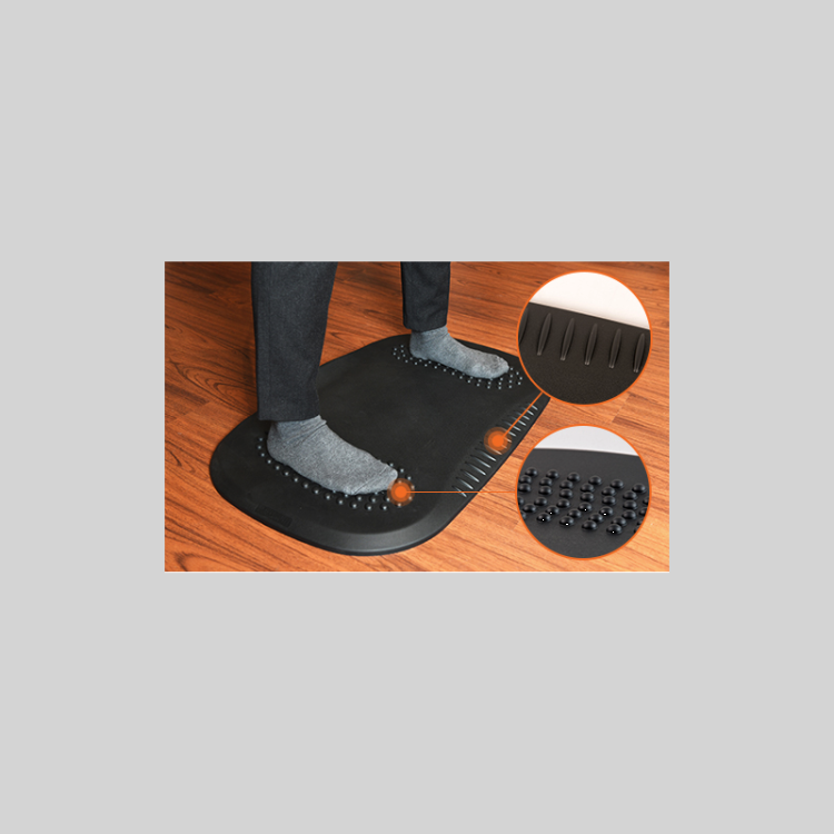 Ergonomska podloga zahvaljujoč masažnim točkam in oblikovanim zaobljenim robom spodbudi krvni obtok in zmanjša občutek utrujenih nog. Dolgotrajna uporaba tovrstnih podlog pri več urnem stoječem delu pomaga izboljšati telesno in duševno sprostitev v primerjavi, če oseba stoji na trdnih tleh brez podloge.
