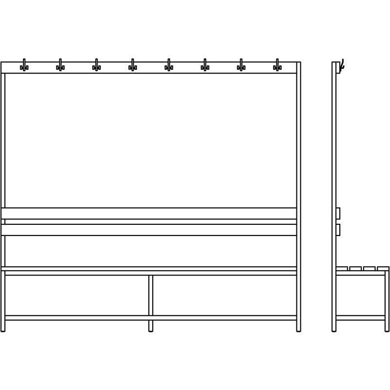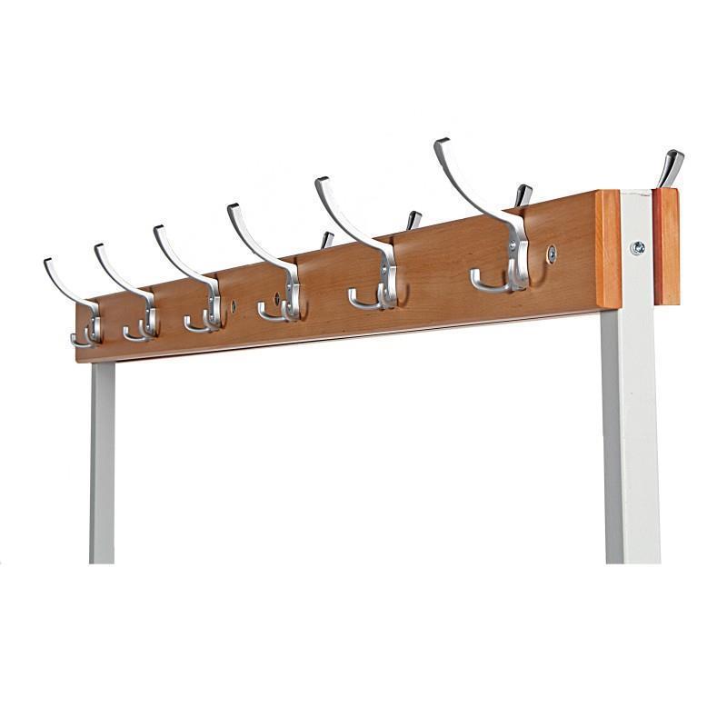Garedrobno klop odlikuje robustna kovinska konstrukcija s stabilnim varjenim podnožjem. Ogrodje je kakovostno prašno lakirano s strukturirano površino. Sedalni del vključuje štiri lasivne lesene letve so obdelane s premazi in lakom, kar omogoča lahko vzdrževanje in čiščenje.