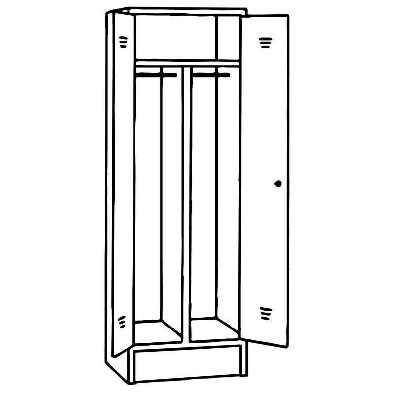Kovinska garderobna omara s prekatom na sredini omogoča ločevanje umazanega in čistega perila oz. civilnih in delovnih oblačil. S to vrsto omare lahko ugodite HACCP predpisom, saj sredinski prekat omogoča higiensko ločevanje civilnih in delovnih oblačil.