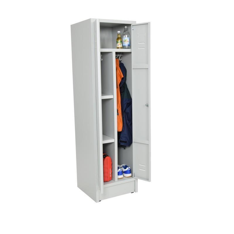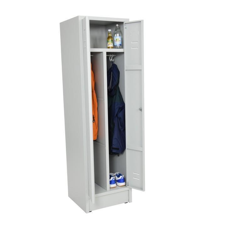 Kovinsko garderobno omaro odlikuje robustna konstrukcija s stabilnim varjenim podnožjem. Po želji se lahko naročijo tudi noge (glejte dodatno opremo), ki omogočajo večjo higieno v garderobah. Omara je kakovostno prašno lakirana s strukturirano površino, kar omogoča lahko vzdrževanje in čiščenje.