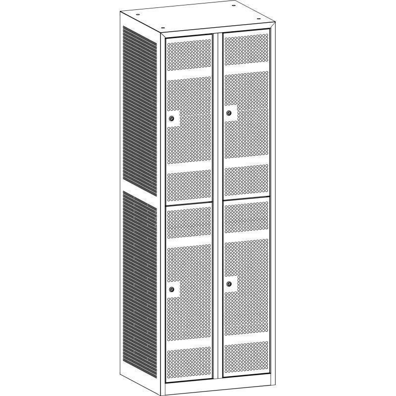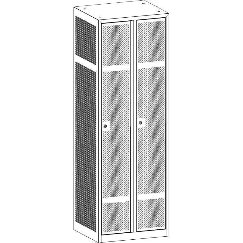 Možnost naročila tudi kovinske mrežaste večnamenske garderobne omares cilindrično ključavnico (glejte dodato opremo). V kolikor gre za opremo večjega števila omar, se priporoča tudi nabava univerzalnega ključa, kateri odklepa vsa vrata.