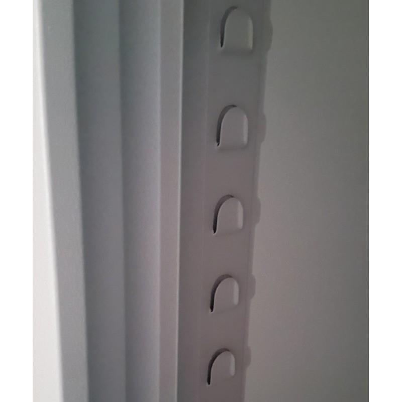 V kovinski omari z drsnimi vrati so nameščene police, katere se lahko nastavljajo po višini v razmaku 3,5 cm. Možnost donaročila polic (glejte dodatno opremo).