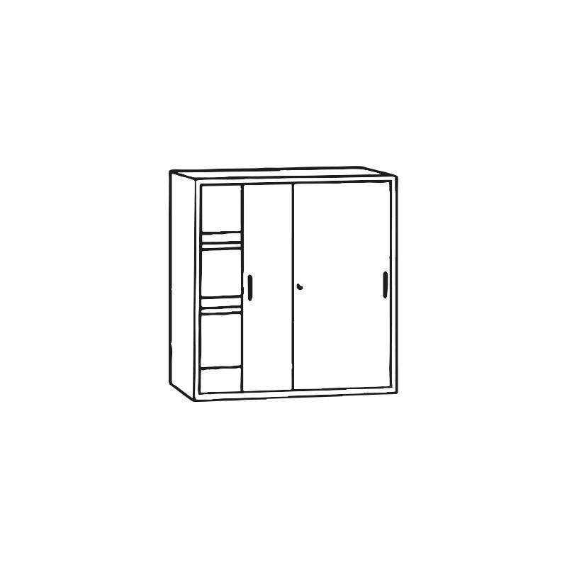 Kovinsko omaro drsnimi vrati odlikuje široka uporabnost, saj je primerna tako za pisarne, kot tudi skladišča, garderobe, skupne prostore, ipd.