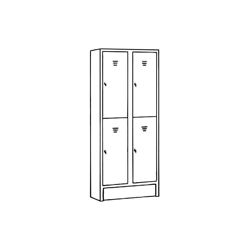 Možnost naročila tudi kovinske večnamenske garderobne omares cilindrično ključavnico (glejte dodato opremo). V kolikor gre za opremo večjega števila omar, se priporoča tudi nabava univerzalnega ključa, kateri odklepa vsa vrata.
