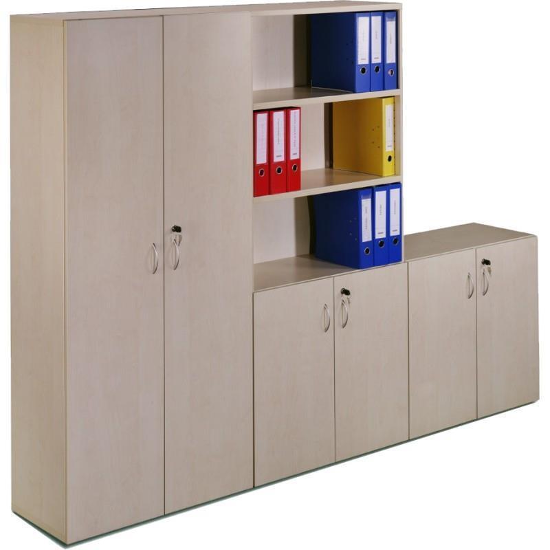 Leseni shranjevalni regali se lahko kombinirajo z lesenimi pisarniškimi omarami s krilnimi vrati ali lesenimi omarami z drsnimi vrati.