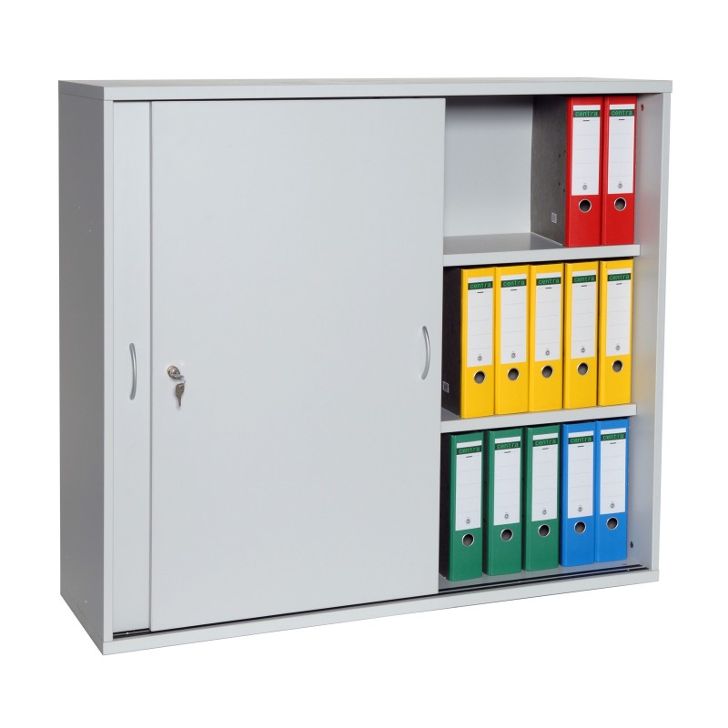 Lesene pisarniške omare z drsnimi vrati se lahko kombinirajo z lesenimi shranjevalnimi regali ali lesenimi pisarniškimi omarami s krilnimi vrati.