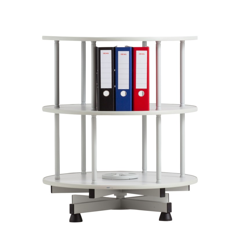 Vrtljivo stojalo za registratorje vam omogoča hiter pregled dokumentov. Stojalo v dveh etažah lahko postavite na pisalno mizo, stojalo z več etažami pa za ločevanje dveh delovnih mest. Registratorji so tako na dosegu roke in ni nepotrebnega vstajanja in izgube časa.
