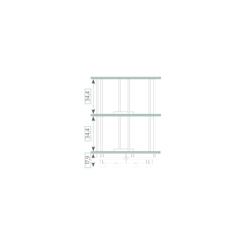 Nosilnost na etažo je 70kg, skupna nosilnost 300 kg pri enakomerni razporeditvi teže bremena